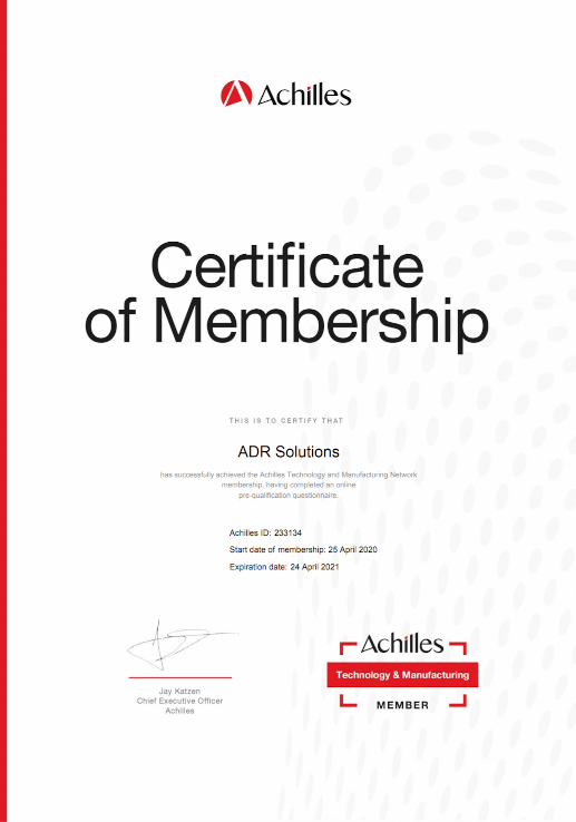 👉 ADR Solutions is inside the Achilles database as a Supplier